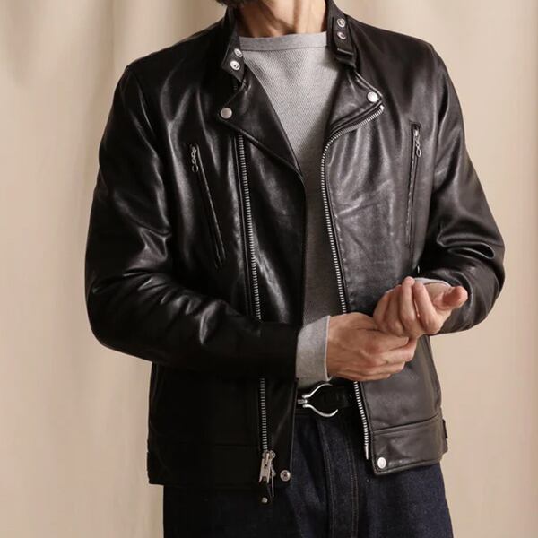 30年代~40年代フライトジャケットからライダースジャケットへ移り変わっていく時代にインスパイアされたダブルブレストライダース。