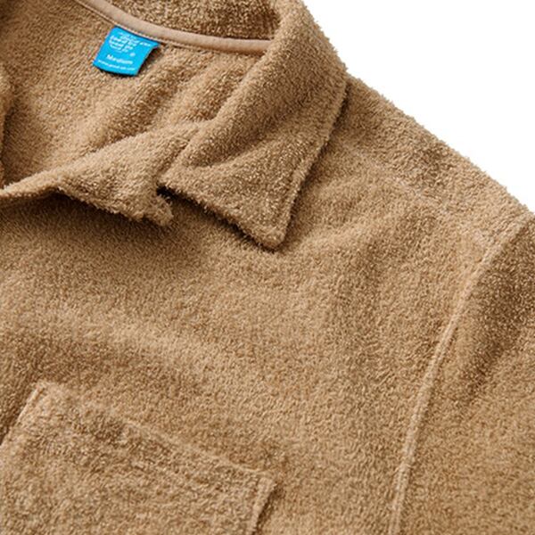 一般的なタオル地や片面パイルのスウェットではゴワゴワしてしまい実現できなかったソフトな着心地と風合い感が特徴で、ほど良い厚みにふんわりと柔らかく適度な伸縮性と弾力感があり、スムースで気持ちの良い肌触りは素肌に一枚で着てもとても快適です。