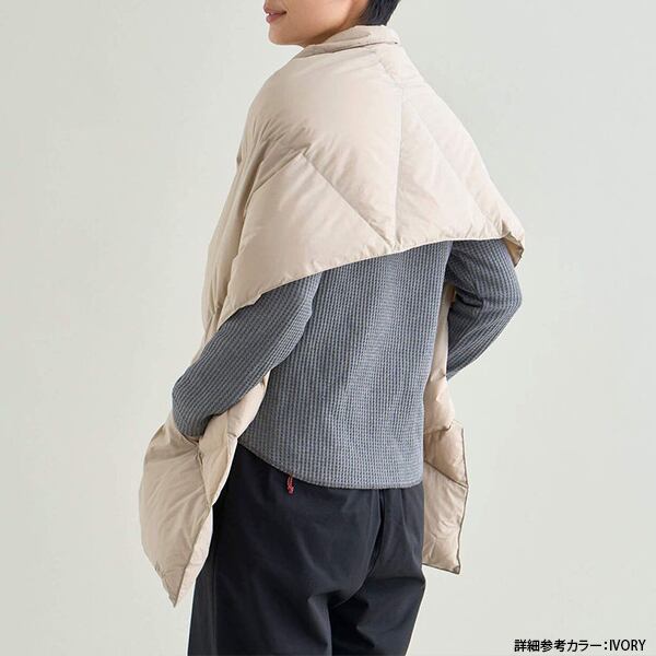 大判なシルエットのダウンポンチョマフラー。