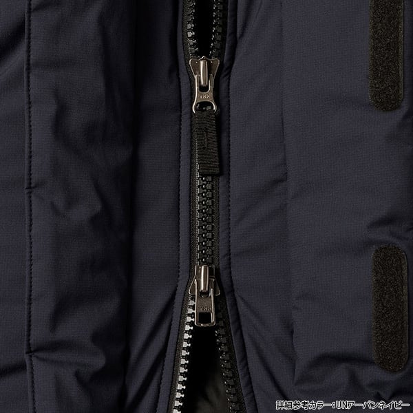 中わた入りの内襟やフロントのダブルフラップなどでコールドスポットを軽減。