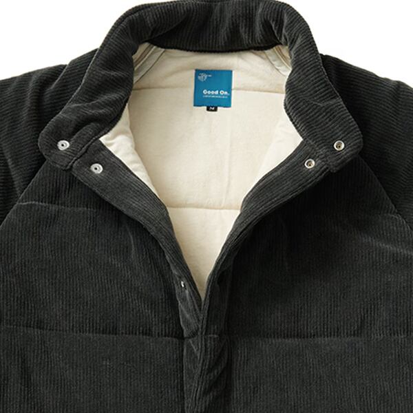人体から出る遠赤外線を活用し快適な保温効果を発揮する光電子繊維と、Good Onのオリジナルファブリック「ニットコーデュロイ」の特徴を活かして製作されたシンプルでクラシックなデザインの中綿ジャケットです。