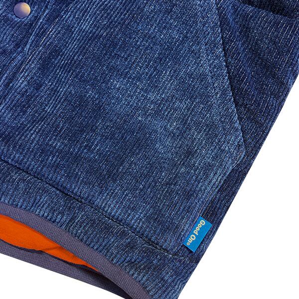 人体から出る遠赤外線を活用し快適な保温効果を発揮する光電子繊維と、Good Onのオリジナルファブリック「ニットコーデュロイ」の特徴を活かして製作されたシンプルでクラシックなデザインの中綿ジャケットです。