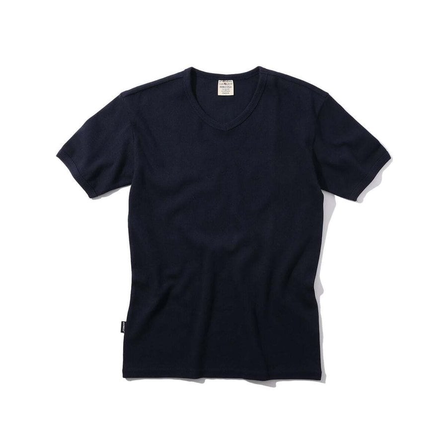 コンフォータブルな日常着として開発された「AVIREX DAILY WEAR」。テンションの強いライクラ糸を入れたリブ編み素材を採用。しっかりした風合いが特徴でヘビーローテーションでの着用にも耐えうる耐久性を兼ね備えている。タイトなフィット感と、浅めのVネックが特徴です。
