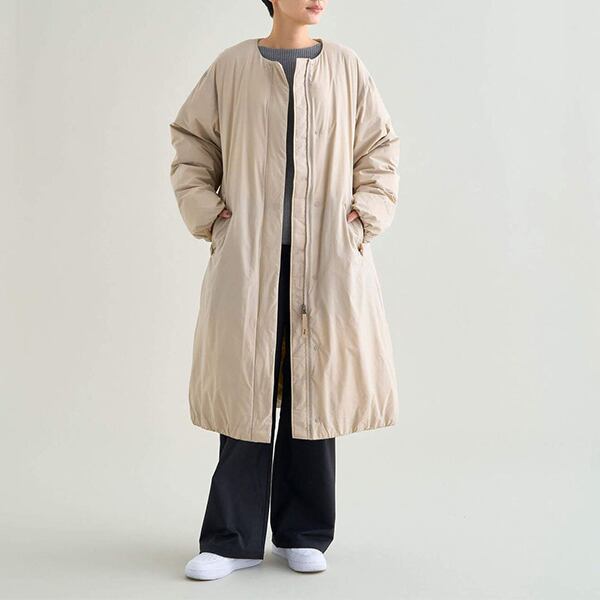 ノーカラーで抜け感のあるノーカラータイプのダウンコートです。